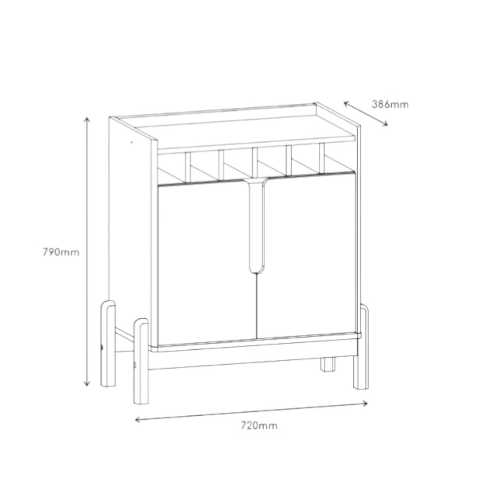 • Aparador Buffet de estilo retro diseñado frecuentemente para crear un "rincón del café" en el hogar. • Este modelo específico cuenta con dos puertas, estantes abiertos (nichos) para organización y patas estilo "palito". • Material: Fabricado principalmente en MDP y MDF con acabado mate. • Dimensiones: 108 cm de ancho, 35 cm de profundidad y una altura de 97 cm. • Configuración: Posee dos puertas con bisagras metálicas y tres estantes internos/externos para almacenamiento. • Requiere armado.