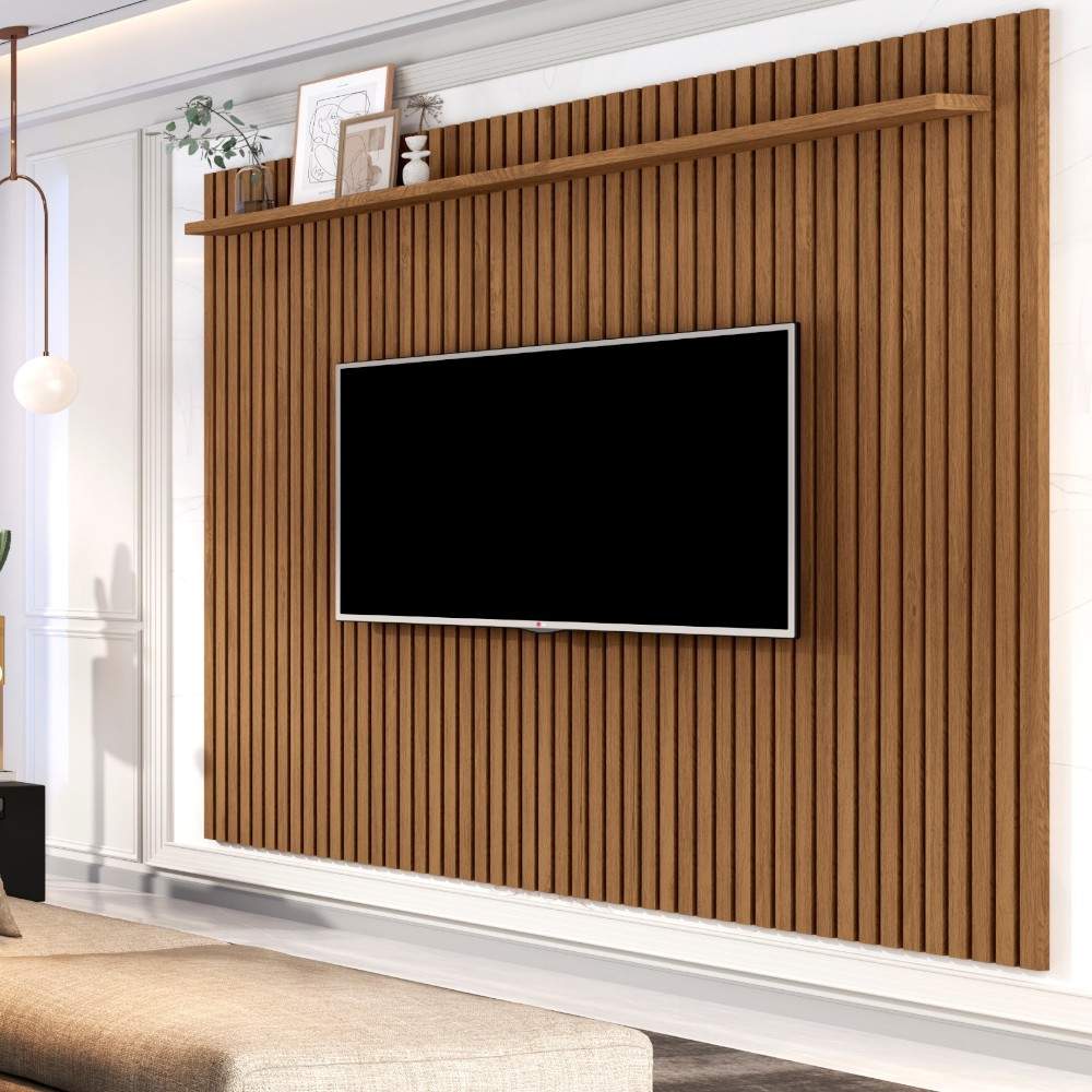 • Panel para TV de diseño ripado (con listones verticales) que está muy en tendencia para darle un toque sofisticado y orgánico a la sala. • Capacidad: La mayoría de estos modelos, como el Panel Ripped Venus, están diseñados para televisores de hasta 75 pulgadas. • Dimensiones: Aproximadamente 185 cm de ancho por 218 cm de alto, con una profundidad de unos 20 cm. • Material: fabricado en MDF o MDP con acabados que imitan maderas naturales como el "Freijó". • Incluye un estante superior ideal para decoración. Suelen contar con pasa-cables ocultos para mantener el orden visual. • Marriott S.A. no realiza ningún tipo de instalación en pared. Por este motivo, los muebles de TV que requieren fijación o montaje en pared no se incluyen en el Servicio de Armado por parte de nuestro equipo. Agradecemos su comprensión y recomendamos coordinar la instalación con un técnico especializado para garantizar una correcta y segura colocación del mueble.