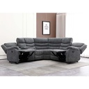 Transforma tu sala con el sofá seccional Gael gris. Este seccional modular de 5 plazas ofrece reclinación manual, una práctica consola con portavasos y un diseño ergonómico en tela de alta calidad. Ideal para cine en casa y máxima relajación. Diseñado específicamente para quienes buscan una experiencia de lujo en su sala de estar, este sofá combina un estilo moderno con la funcionalidad necesaria para el entretenimiento familiar. Sistema de Reclinación Manual: Equipado con mecanismos suaves que permiten ajustar la posición de descanso de forma sencilla y sin necesidad de cables. Consola Central Funcional: Incluye un módulo con compartimento de almacenamiento y dos portavasos integrados, ideal para disfrutar de tus bebidas favoritas durante una película o partido. Capacidad Ampliada: Su diseño modular en forma de "L" ofrece asientos cómodos para 5 personas, maximizando el espacio de tu sala. Tapizado de Alta Resistencia: Acabado en tela de color gris oscuro, un tono versátil y sofisticado que facilita la limpieza y resiste el uso diario. Estructura Ergonómica: Respaldo con soporte lumbar y acolchado de alta densidad para garantizar horas de descanso sin fatiga. Requiere armado.
