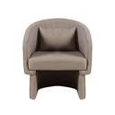 Butaca o sillón tapizado de estilo contemporáneo. Presenta un diseño moderno y envolvente con líneas curvas y un respaldo que se extiende hacia los reposabrazos. Está tapizado en una tela de color neutro que le confiere un aspecto elegante y acogedor. Incluye un cojín adicional en el respaldo para mayor comodidad. La estructura es robusta, lo que garantiza durabilidad y resistencia. Su estética lo hace adecuado para espacios con decoraciones modernas, contemporáneas o minimalistas.
