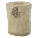 Mesa decorativa que simula un tronco de árbol. Esta pieza de mobiliario está elaborada con hormigón de fibra y presenta un acabado en tono marrón natural, con una textura que imita la madera y detalles que sugieren nudos o imperfecciones de un tronco real. Su diseño es cilíndrico, con una superficie superior plana y una base ligeramente irregular, aportando una estética moderna y orgánica a la vez.