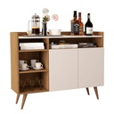 • Aparador Buffet de estilo retro diseñado frecuentemente para crear un "rincón del café" en el hogar. • Este modelo específico cuenta con dos puertas, estantes abiertos (nichos) para organización y patas estilo "palito". • Material: Fabricado principalmente en MDP y MDF con acabado mate. • Dimensiones: 108 cm de ancho, 35 cm de profundidad y una altura de 97 cm. • Configuración: Posee dos puertas con bisagras metálicas y tres estantes internos/externos para almacenamiento. • Requiere armado.
