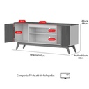 • Rack para TV en color blanco roto (Off White) y freijó (madera), diseñado para televisores de hasta 60 o 65 pulgadas. • Estilo: Retró con puertas ripadas (de listones). • Material: Principalmente MDP (tablero de partículas de densidad media) y pies de madera maciza (eucalipto). • Color: Combinación de blanco roto (Off White) con acabado brillante y freijó (madera) con acabado amaderado táctil. • Dimensiones: Aproximadamente 160 cm (ancho) x 68 cm (alto) x 38 cm (profundidad). • Capacidad: Cuenta con dos puertas, una prateleira (estante) y varios nichos organizadores. • Uso: Ideal para organizar aparatos electrónicos y objetos decorativos en la sala de estar. • Requiere armado.