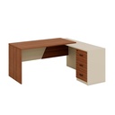 Escritorio de oficina en forma de L. Es un escritorio espacioso y moderno, ideal para oficinas profesionales o domésticas. Está fabricado con materiales de alta calidad para asegurar durabilidad. Ofrece almacenamiento adicional con una estantería incorporada de 3 cajones. Su diseño permite que se integre fácilmente en cualquier decoración del hogar u oficina. Requiere Armado.