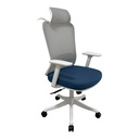 Silla escritorio giratoria c/ruedas reposacabeza gris/azul