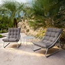 • Juego de muebles de exterior para balcón o terraza, que incluye dos sillones tipo lounge y una mesa auxiliar. • El conjunto está compuesto por dos sillones con una estructura de metal blanco y cojines acolchados de color claro, junto con una mesa baja redonda a juego. • Es ideal para espacios exteriores como jardines, patios o balcones, y está diseñado para ser cómodo y duradero. • Requiere armado. • Cómpralo ya en Almacenes Marriott, la tienda online líder en Ecuador en decoración. • Material de las patas: Acero • Tipo de tela de los cojines: Poliéster • Peso máximo permitido: Mesa: 30kg Sillón: 160kg