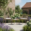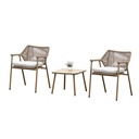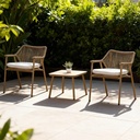 El conjunto de bistró Wood es un moderno y cómodo conjunto de exterior de 3 piezas diseñado para ofrecer durabilidad y relajación diaria. Materiales: Cuerda resistente a los rayos UV (hasta 2000 horas) que aporta una elegante textura tejida y un rendimiento duradero en exteriores. Durabilidad: Estructura de tubo de acero galvanizado para mayor resistencia, protección contra la corrosión y estabilidad estructural. Características: Cojines de tela de olefina resistentes al agua y a la decoloración, que ofrecen comodidad y protección contra la intemperie. Dimensiones: Sillas: 58 x 62 x 80 cm; Mesa: 50 x 50 x 39 cm con tapa de vidrio templado, ideal para patios o balcones pequeños. Instrucciones de cuidado: Cuando no esté en uso, mantenga el conjunto cubierto. Al cubrir sus muebles de exterior, prolongará su vida útil y los mantendrá en óptimas condiciones.