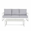 SET SALA DE EXTERIOR ETHAN 4PCS ALUMINIO BLANCO +COJINES S.T:214X85X86CM S.I:78X85X86CM M:120X66X36CM