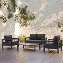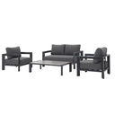 SET SALA DE EXTERIOR ASHLY 4PCS ALUMINIO GRIS OSCURO+COJINES S.D: 142X79X60CM S.I:78X79X60CM M:130X64X34CM