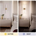 Aplique de luz LED ideal para tocador de baño, pasillos, para colocar sobre arte. Este tipo de iluminación es ideal debido a su eficiencia energética y larga vida útil. Las luces LED integradas son una tendencia popular en el diseño de baños modernos. Ofrecen una luz brillante y consistente, perfecta para tareas de aseo.