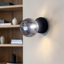 APLIQUE DE PARED ROUND DE CONCRETO NEGRO Y VIDRIO SMOKE 1L G9 12CM