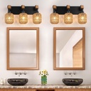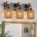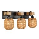 APLIQUE DE PARED NOMADA DE ACERO NEGRO/ MADERA Y CUERDA NATURAL 3L E27 50X27 CM