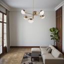 LAMPARA COLGANTE LED ULISES DE METAL DORADO TULIPAS OPAL 3000K 27W 60X60X29CM