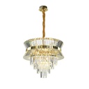 LAMPARA COLGANTE WEST DE ACERO DORADO CON CRISTALES K9 9L E14 44X44X43/120CM