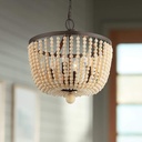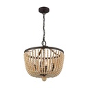 Lámpara colgante tipo chandelier de etsilo boho con cuentas de madera. Ideal para casas de playa. Requiere 4 focos de base E14 los cuales se venden por separado.