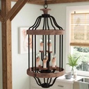 LAMPARA COLGANTE MORRISON DE METAL NEGRO/WOOD 9L E12 51X106CM