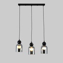 LAMPARA COLGANTE GALO LINEAL DE METAL NEGRO Y VIDRIOS SMOKE 3L E27 58X10X100CM