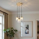 LAMPARA COLGANTE VINCENT DE METAL GOLD Y VIDRIO DEGRADADO AMBAR 3L E14 13X13X25-120 CM