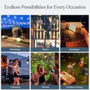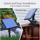 Guirnalda de 8 metros de largo con 12 luces LED y panel solar desmontable con interruptor de encendido/apagado situado en la parte posterior. Son la decoración perfecta para balcón, terraza, jardín, bistró, pérgola, cenador, tienda de campaña, barbacoa, techo de ciudad, mercado, cafetería, cena, boda, cumpleaños, fiesta, etc. Características principales: * 2 modos de uso: luz recargable con panel solar o luz continua con adaptador AC120V. Con el panel solar la guirnalda no necesita un tomacorriente, aunque, si lo prefieres, la guirnalda cuenta con enchufe. * IP 55 ideal para exteriores *Las bombillas son de plástico inastillable, con resistencia al calor de hasta 40°C y el cable es flexible y resistente. *Las bombillas LED duran 25.000 horas * Horas de carga con panel solar: mínimo 6 horas, máximo 8 horas. * Horas de luz con panel solar: 6 horas aproximadamente. * Separación de 50 cm entre cada foco. * Largo total: 8.41 m Incluye: * 12 focos led en tonalidad cálida. * 2 filamentos led de repuesto * Estaca y clip para instalar el panel. * Panel solar de silicon monocristalino 4W IP55 * Bateria Li-ion 3.7V 2000mAh 18650 * Adaptador: AC120V DC 4.5V 1.2A IP44