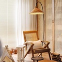 Lámpara de pedestal E27 Alana negra y pantalla ratán natural