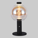 LAMPARA DE MESA LED RECARGABLE CITRINO DE METAL NEGRO Y VIDRIO AMBAR 3TONS 1.5W 15X30CM