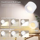 Ideal para salas de estar, cocinas, dormitorios, baños, hoteles, como lámpara de pared, de mesa o de lectura. Esta luminaria tiene las siguientes características: -Boton touch para fijar la temperatura de luz y brillo. Cuenta con 3 modos de color (pulsación corta) y brillo ajustable (pulsación larga) de cambio. - 2 opciones de instalación fácil y rápida. Se puede fijar en cualquier lugar utilizando el fuerte adhesivo 3M o las tuercas de tornillo. Olvídate de los cableados y puntos eléctricos. - La luminaria puede girar libremente a 360 °, que te permite cambiar la dirección de la luz para adaptarse a sus diferentes necesidades, y también se puede separar del soporte en cualquier momento para cargar o utilizar como una luz portátil. - Equipado con cargador Tipo C, el tiempo de carga es de aproximadamente 5 horas. 10 horas de tiempo de trabajo dependiendo de la intensidad. - El aplique LED inalámbrico está hecho de material resistente ABS. Con protección IP20.