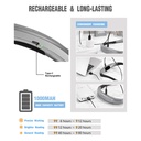 - 3 colores de luz y 3 niveles de brillo: posee 3 modos de temperatura de color: amarillo (3000 K), blanco cálido (4000 K) y blanco frío (6000 K). - Posee un interruptor independiente para seleccionar 3 niveles de brillo. - La luz de cuello perfecta para hacer crochet y la luz de lectura para la cama, tejer, acampar o reparar, etc. - Recargable con USB tipo C. Hasta 80 horas de brillo potente y que no disminuye con la batería recargable premium de 1000 mAh incluida. - Cuidado de los ojos y diseño ergonómico: con filtro de luz azul y diseño sin parpadeo, no sentirás más fatiga visual. Con cuerpo flexible y ajustable para que pueda obtener el ángulo que le resulte más cómodo. Esta luz de lectura alrededor del cuello tiene un diseño ergonómico, ¡es una lámpara de cuello manos libres excepcional para leer! - Apto para parejas: tiene un diseño especial de ángulo de haz estrecho (90°). Es lo suficientemente brillante para el área que colocó y al mismo tiempo lo suficientemente tenue como para no molestar a su pareja que duerme profundamente. - Certificación FCC, CE, RoHS, PSE y C-TICK. 4.