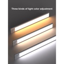 Ideal para walking closets, armarios, anaqueles de cocina, cajones, baños, dormitorios, pie de cama, escaleras, pasillos. Esta luminaria cuenta con las siguientes características: *Modo siempre encendido: Toca 1 vez el botón de encendido para activar esta función. *Modo sensor de noche: Toca 2 veces el botón de encendido para activar esta función, la luz debe parpaderar 3 veces. La luz se encederá cuando el ambiente está en oscuridad y detecte movimiento humano. *Modo sensor de dia: Toca 3 veces el botón de encendido para activar esta función, la luz debe parpaderar 2 veces. La luz se encederá cuando detecte movimiento humano, no necesariamente debe haber oscuridad. Con modo de sensor de movimiento, se encienden automáticamente cuando se detecta movimiento humano y se apagan automáticamente después de unos 15 segundos sin detectar movimiento. Ya no tienes que preocuparte por tropezar en la oscuridad tratando de encender el interruptor. El modo detección es de 120º y hasta 3 metros de distancia al sensor. * 3 temperaturas de luz (cálida, fría, neutra). Presiona el boton de configuración para seleccionar la temperatura de luz. * Brillo ajustable. Mantén presionado el botón configuración para ajustar el brillo deseado. Esta luminaria tiene memoria, por lo que quedará fijada la temperatura de luz y el ajuste del brillo que seleccionaste cuando vuelva a encender. *Recargable: Cuenta con una batería recargable de 1500mAh y cable Usb tipo C (sin adaptador). El tiempo de carga es de 3.5 horas. La duración de la carga es de hasta 8 horas en modo siempre encendido. Instalación: Esta luminaria cuenta con 2 adhesivos, de un lado se pega a la superficie donde se desea instalar y del otro lado es metal que se adhiere de forma magnética a la parte posterior de la luminaria.