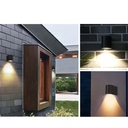 Moderna luminaria de pared apta para exteriores. Requiere 1 foco de base GU10 que se vende por separado.