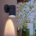Esta luminaria de pared exterior irradia la luz verticalmente hacia abajo a través del difusor de vidrio transparente, creando acentos especiales en cualquier pared de la casa. La luz se irradia de forma muy agradable e indirecta. La forma del cuerpo de la luminaria recuerda a un cilindro, que está unido a un soporte de pared redondo. Ilumina con estilo cualquier área de entrada, terraza o balcón. Requiere un foco led GU10 el cual se vende por separado.