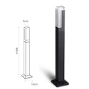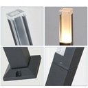 Bolardo o poste de luz LED para exteriores, diseñado para iluminar jardines, caminos o entradas.Presenta un diseño moderno y minimalista, con un cuerpo principal rectangular de color negro mate y una sección superior translúcida que alberga la fuente de luz LED. Fabricado con materiales resistentes lo que le confiere durabilidad y resistencia a la intemperie, con clasificación IP54. Proporciona iluminación ambiental o funcional en espacios exteriores, ofreciendo luz cálida o fría según el modelo. Ideal para realzar la estética de jardines, patios, terrazas o para señalizar caminos y entradas.