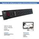 SUPRESOR DE SOBREVOLTAJE PARA EQUIPOS ELÉCTRICOS Y ELECTRÓNICOS, 1200 VA/W, 220JOULES, 120 VAC. PUERTO USB.