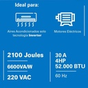 PROTECTOR DE VOLTAJE PARA A/A INVERTER Y MOTORES ELÉCTRICOS. 6600VA/W, 30 A, 4 HP, 52.000 BTU, 2100 JOULES, 220 VAC, 60 HZ. TIEMPO DE ESPERA 10 SEGUNDOS. CON BORNERAS