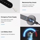 Cerradura biométrica WiFi que permite el desbloqueo mediante huellas dactilares, claves PIN, llave mecánica y vía aplicación Dexel Smart. Compatible con puertas de madera o metálicas entre 35-60mm de grosor. Fabricada en aleación de aluminio y su cara frontal es de vidrio templado. Cuenta con teclado táctil y la manija puede ser instalada a la derecha o izquierda. Requiere de 6 pilas AA.