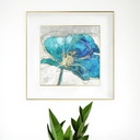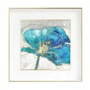 CUADRO ENMARCADO CON FLOR AZUL/MORADO/BLANCO Y DETALLES DORADOS 80X80CM