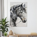 CUADRO CABALLO VINTAGE BLANCO Y NEGRO CON DETALLES DORADOS 80X120CM