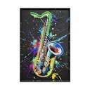 CUADRO ENMARCADO SAXOFON MULTICOLOR HANDPAINT + LUZ LED 63X93X4CM