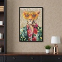 CUADRO ENMARCADO TIGER CON GAFAS HANDPAINT + LUZ LED 63X93X3CM