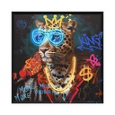 CUADRO ENMARCADO TIGER KING CON GAFAS HANDPAINT + LUZ LED 83X83X4CM