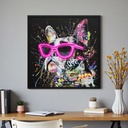 Cuadro 83x83 Bulldog con gafas colorido + luz led