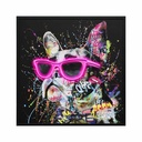 CUADRO ENMARCADO BULLDOG CON GAFAS COLORIDO HANDPAINT + LUZ LED 83X83X3CM