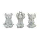 SET X3 FIGURAS DECORATIVAS ELEFANTES HACIENDO YOGA DE RESINA BLANCA 20CM
