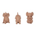SET X3 FIGURAS DECORATIVAS DE ELEFANTES HACIENDO YOGA DE RESINA COLOR TAUPE 15CM