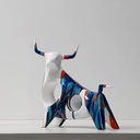 FIGURA DECORATIVA TORO DE RESINA BLANCO/AZUL/NARANJA 25X11X23CM