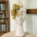 FLORERO FACE AND FLY DE POLIRESINA Y PORCELANA COLOR BLANCO Y DORADO 14X12X26CM