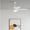 - Apto para exteriores. - Incluye 2 bombillas LED en tonalidad cálido de 7 vatios c/u. - Compatible con módulo LEDEX I02302 de 3 tonalidades de luz. Se vende por separado. - Motor Heavy Duty reversible de 3 velocidades para largas horas de uso. - Peso de envío del ventilador 12.74 kgs. - 5 aspas de ABS blancas. - 2 Cadena de tracción incluida para encendido/apagado de luzy controlar velocidades. - Montaje doble (techo plano o en ángulo) con varilla bajante de 6" incluida. - Adecuado para lugares húmedos en interiores y exteriores. -Motor: 47W