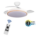 El ventilador Arcadia viene con aspas retráctiles, brinda confort y eficiencia a tus espacios. Cuenta con un diseño limpio y moderno, ya que las aspas se retraen cuando no está en uso funcionando solo como lámpara. El control remoto proporciona 6 velocidades, y función de apagado con 2 opciones de temporizador y el tamaño de las aspas son adecuadas para habitaciones pequeñas, cocina, comedor, sala de estudio. Su motor DC tiene un rendimiento super silencioso permitiendo ahorrar energía y disfrutar de una refrescante ventilación por más horas. Está equipado con kit de luz led integrado de 3 tonalidades de luz que puedes dimerizar. Características principales: *6 velocidades *Motor DC que permite ahorrar hasta un 60% de energía eléctrica en tu planilla *Luz led dimerizable de 32W incorporada en 3 tonalidades (cálido, intermedio o frío). *Control remoto con timer *Montaje: tumbado plano. *4 aspas en material Policarbonato *Pintura UV *Incluye varilla de extensión 15 cm *Motor 30W *Voltaje: 100-240V/50-60Hz *Peso: 4.7Kg El control remoto requiere 2 baterías AAA. No incluídas.