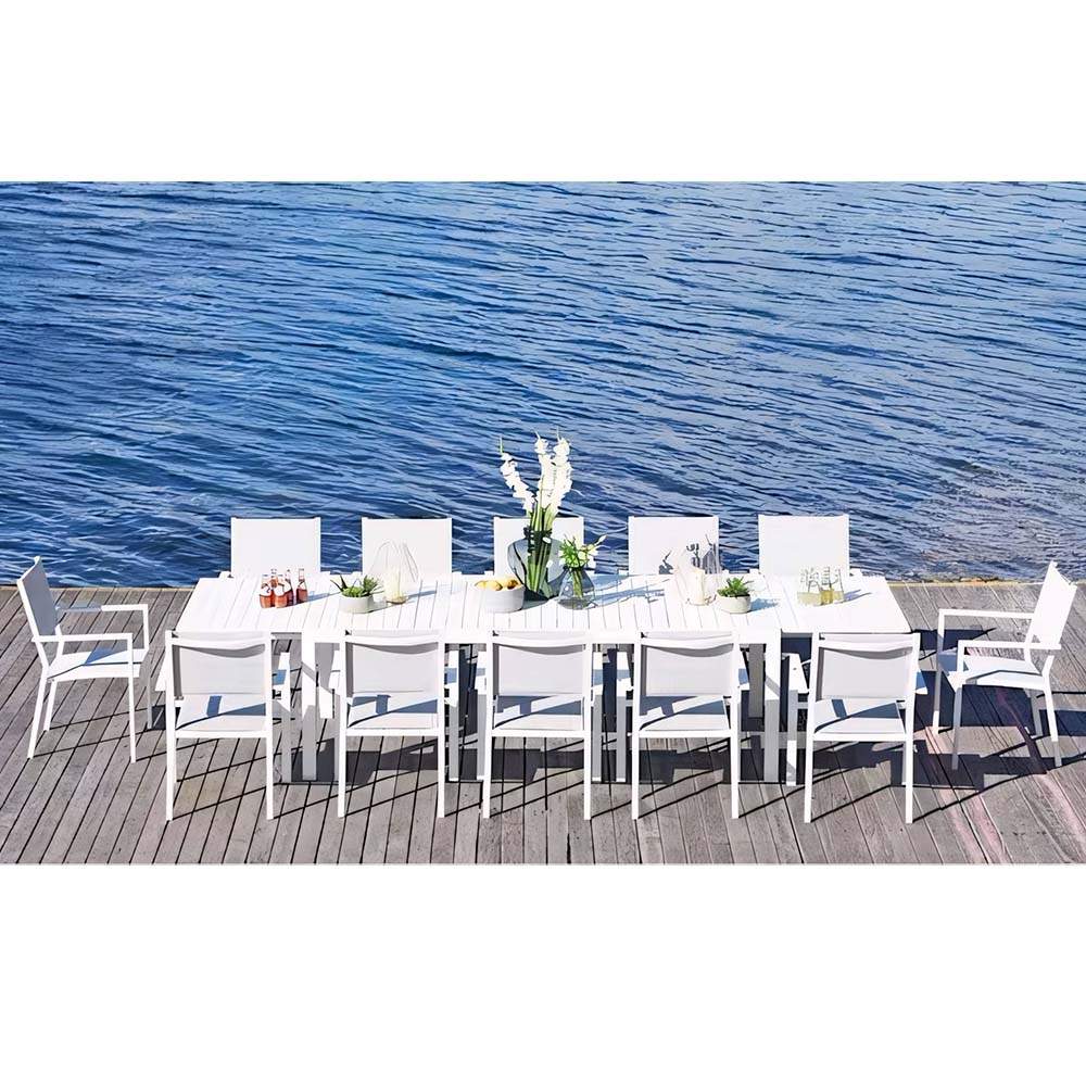 - Material de las patas: Aluminio - Medida del top: 8mm - Peso máximo permitido: Mesa extensible: 50kg Silla: 120kg - Requiere Armado