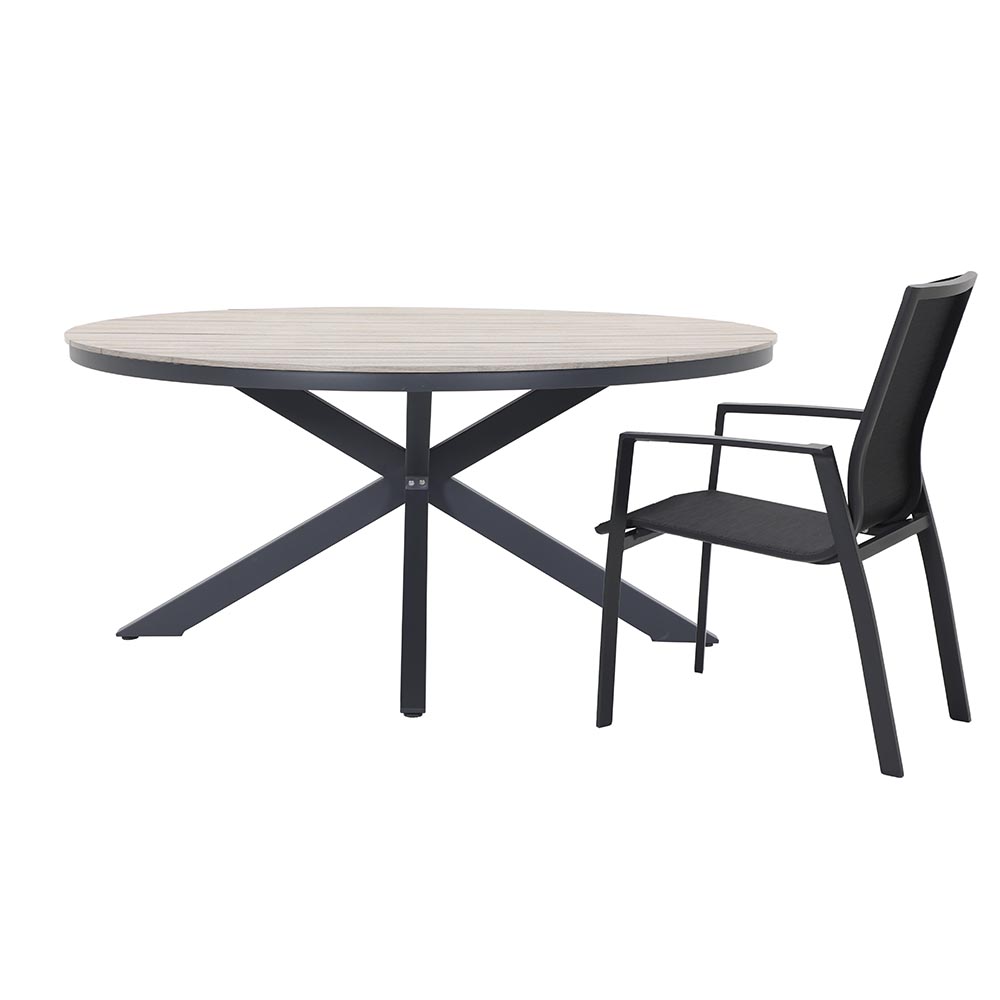 • Material de las patas: Aluminio • Tipo de tela de los cojines: Poliéster, Textilene • Peso máximo permitido: Sillón triple: 360kg Sillón: 120kg Mesa: 30kg • Requiere Armado