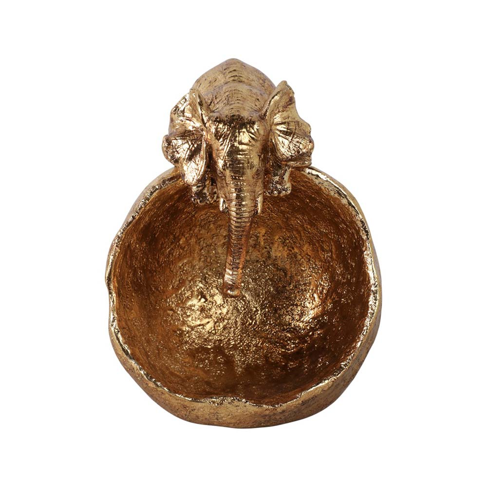 Diseñado para guardar joyas pequeñas (anillos, pendientes, collares), llaves u otros objetos pequeños. Fabricado en resina con un acabado metalizado, como se ve en este ejemplo dorado. Presenta un elefante subiendo por el costado de un cuenco ovalado o en forma de huevo, a menudo con el tronco levantado, lo que se considera un símbolo de buena suerte, prosperidad y fuerza. Un accesorio decorativo popular para mesitas de noche, cómodas o encimeras de baño. Cómpralo ya en Almacenes Marriott, la tienda online líder en Ecuador en decoración.